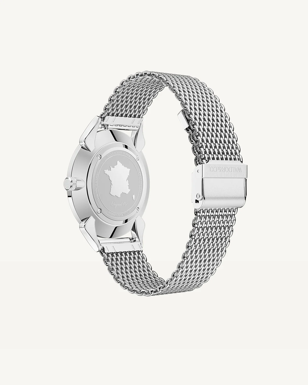 Strap: Mesh strap in rhodium-plated 316L stainless steel